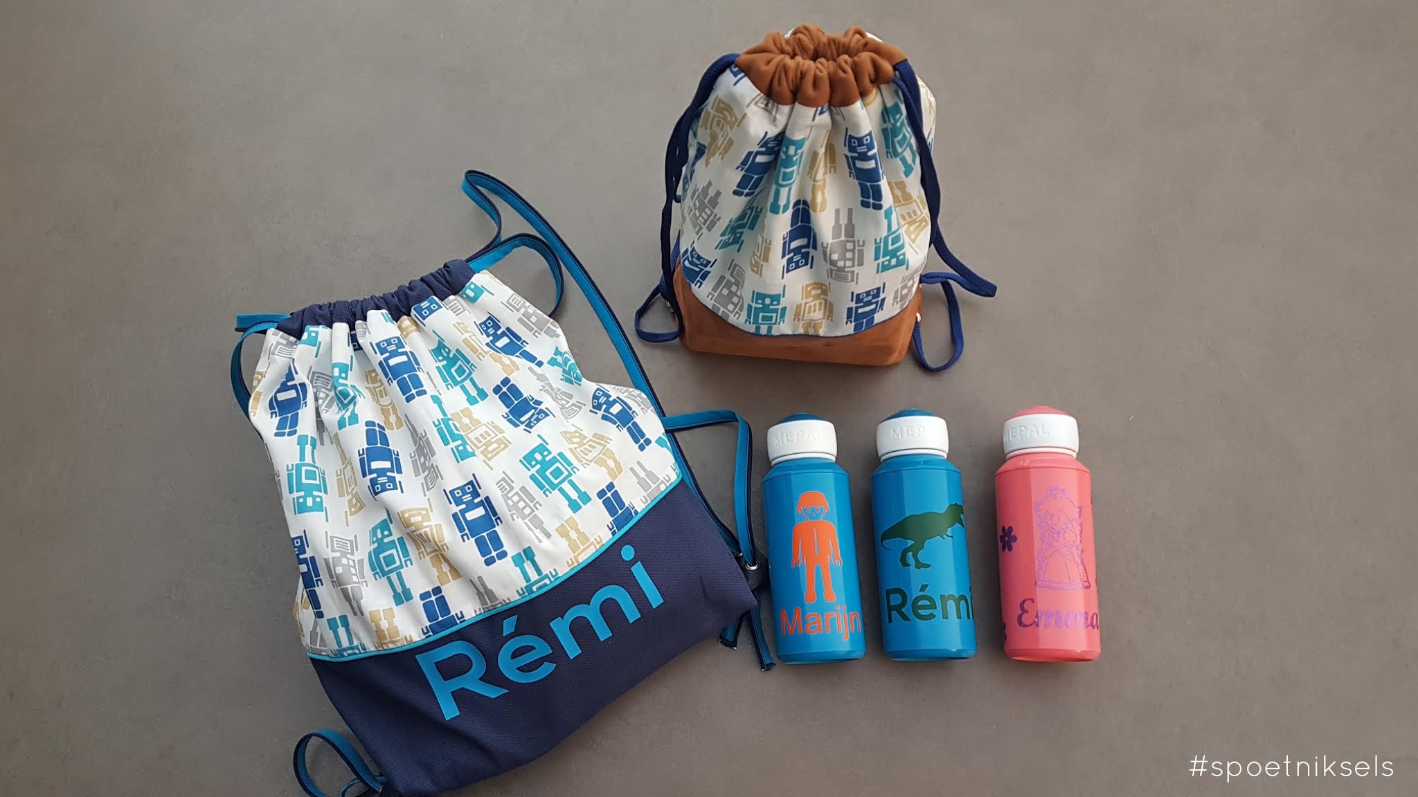 Je hebt ze natuurlijk ook met een tekening of print op, maar ik kocht ze in een simpele kleur. Ideaal om de kinderen een eigen figuur te laten kiezen, samen met hun naam erbij. Marijn is dus een echte playmobilfan en houdt van oranje, Rémi houdt van dinosaurussen en wou bijgevolg een groene opdruk en Emma is een echt prinsesje met momenten. Ze zag die "blingblingvinyl" en wou spontaan een prinses met bloemetjes. Zij content, ik content! Wat wenst een moeder nog meer?
